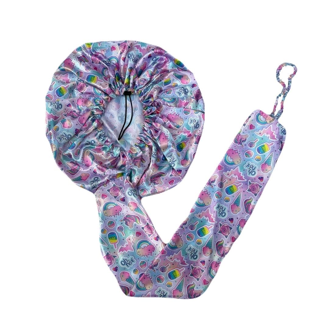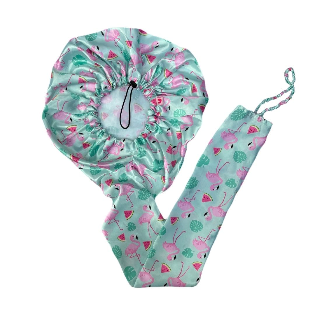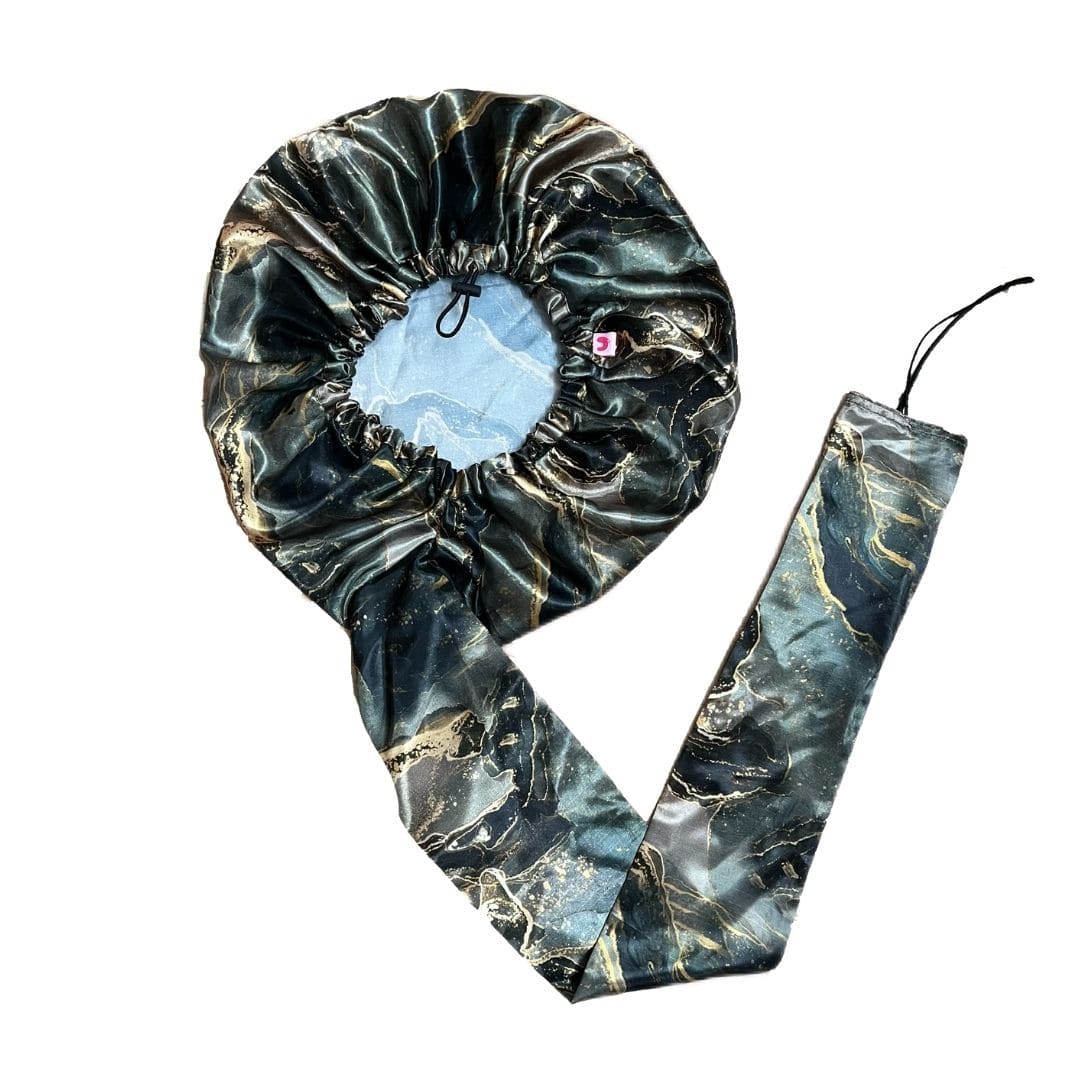- Place the bonnet over your head and adjust the drawstring for a snug fit.